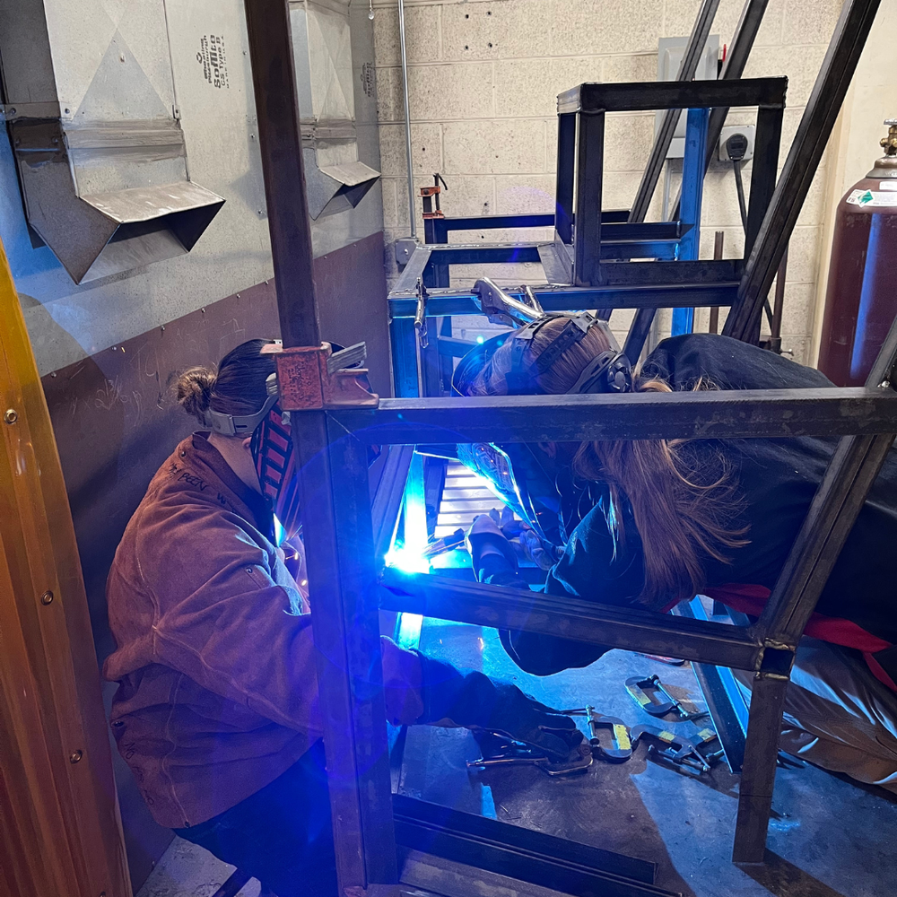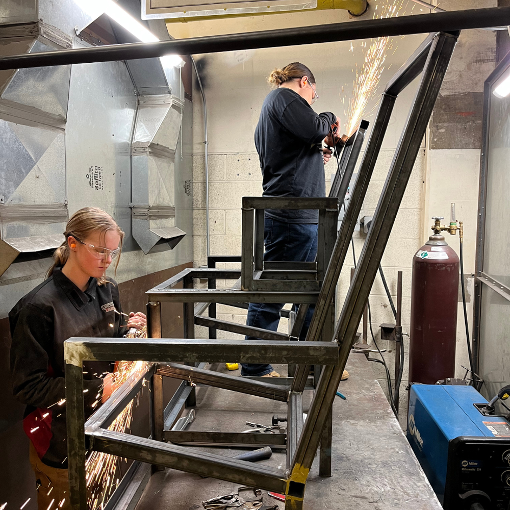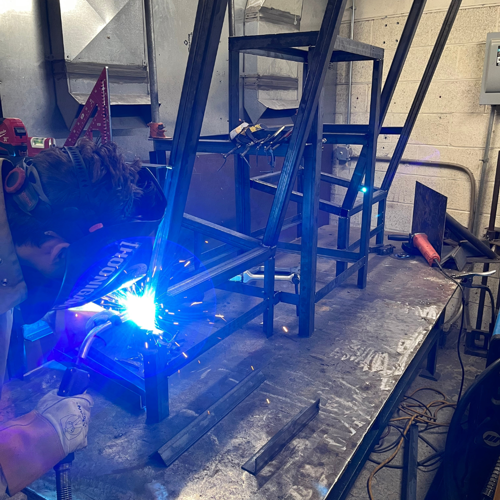 The students collaborated to overcome the challenges that were presented throughout the construction of the bench chair. All students worked to fill in any joints and grind the welds flush to prep for paint.
