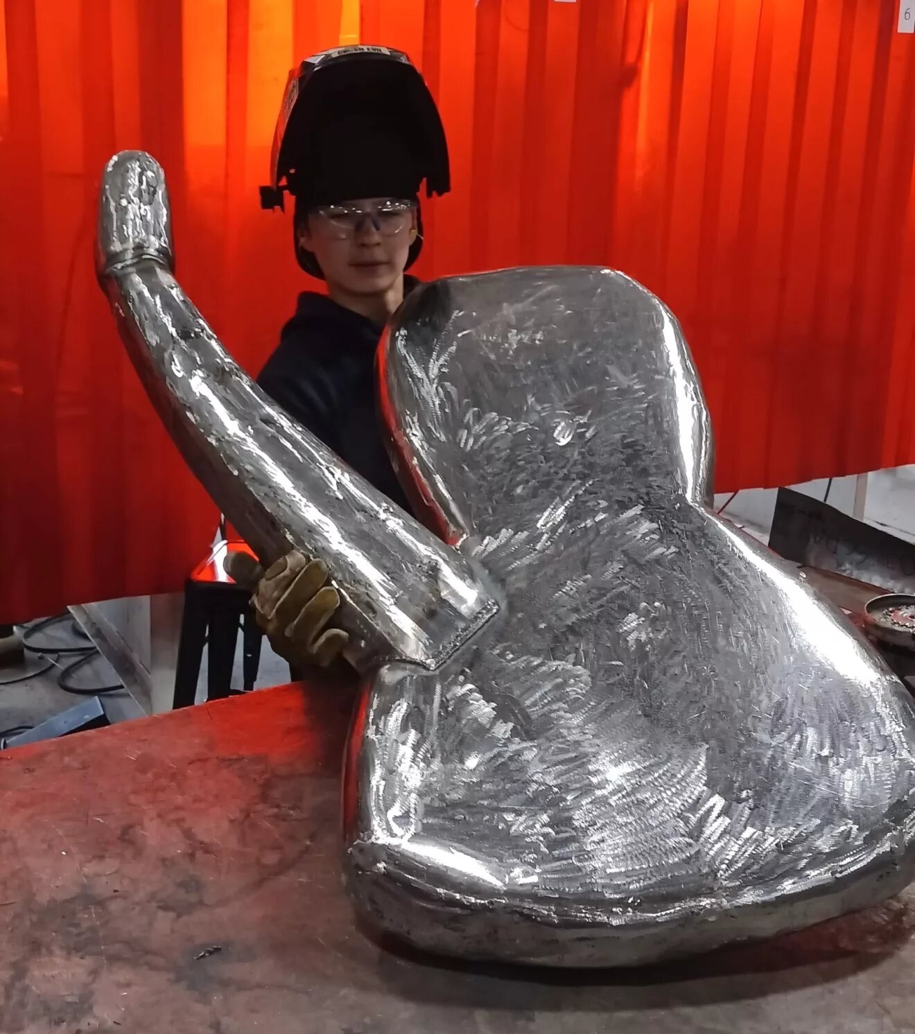 Work began during the week of April 3. Students created many sketches and paper models, and difficult layout problems were resolved with AutoCAD, a digital design software, and a computerized plasma cutting device. Students performed all of the work under Wittmier’s direction.
