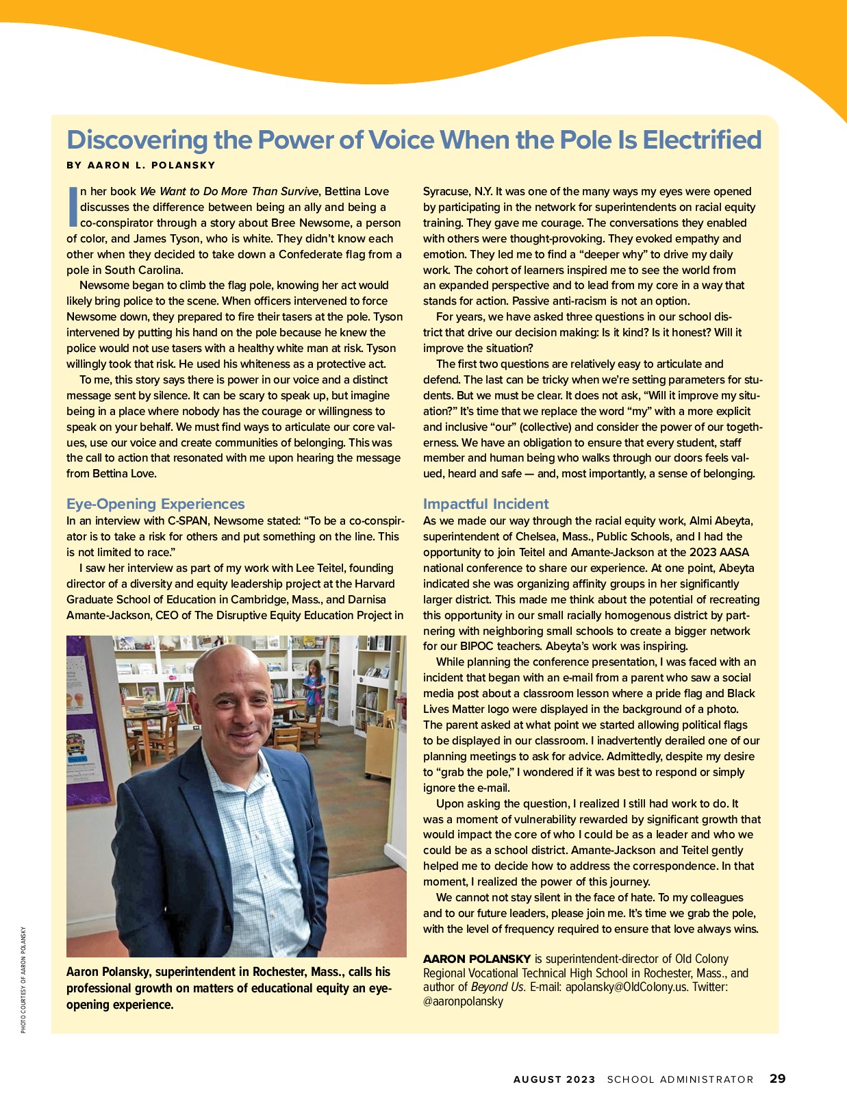 We are excited to share piece written by Aaron Polansky, Superintendent-Director, of the Old Colony Regional Vocational Technical School District in Rochester, MA. The article was published in this month’s AASA School Administrator magazine.