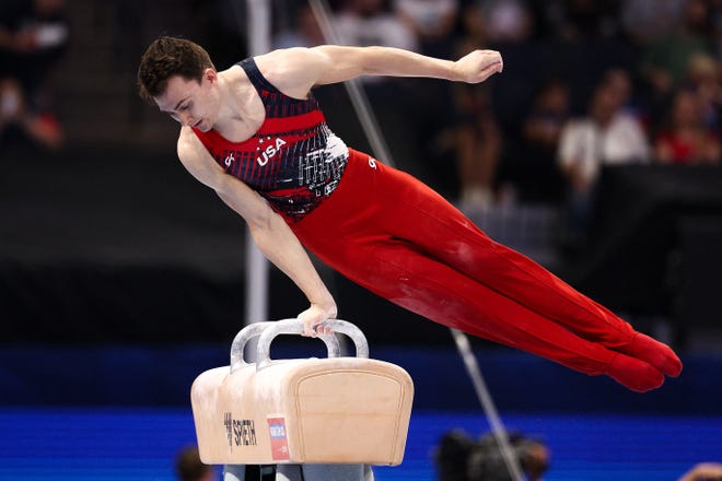 Stephen Nedoroscik’s performances this week on the pommel horse during the gymnastics team trials for the U.S. Men’s Olympic team in Minneapolis, as well as his performances earlier this year at the U.S. Championships were strong enough to earn the Worcester Tech graduate a spot on the team heading to Paris this summer.