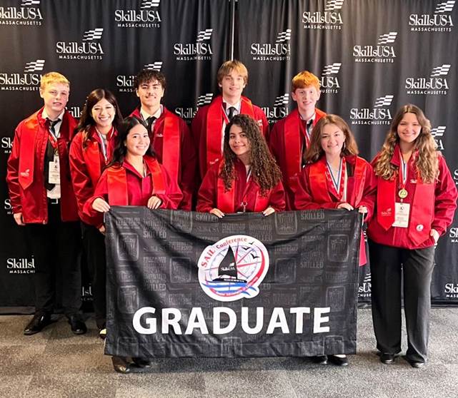 Nine Seniors attended the SkillsUSA SAiL Conference @ Gillette Stadium in Foxborough. They were able to network w/ industry professionals & colleges & gain important life skills like financial management & crafting a resume at workshops w/students from across the state.