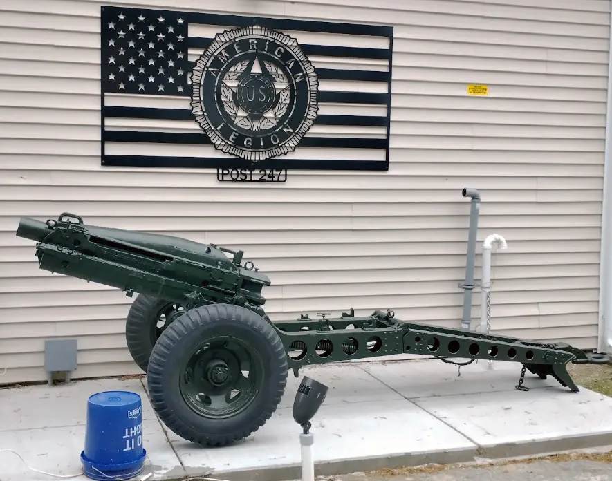 Upon completion, the refurbished WWII cannon, with the help of Brad Taylor from the GLTHS Building and Grounds department, was returned to its new concrete pad, positioned in front of the recently renovated American Legion Post, which was rebuilt after a devastating fire several years ago.