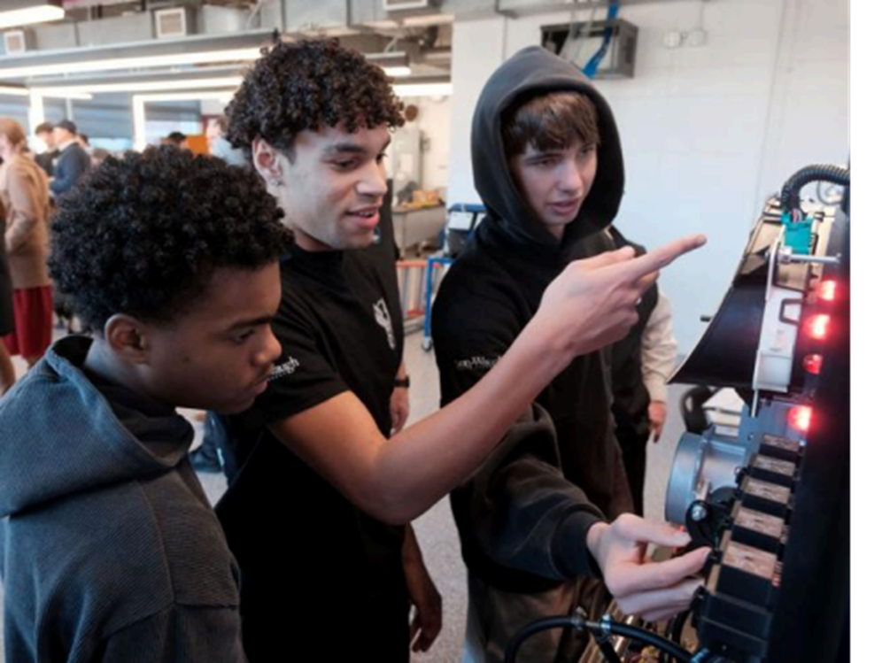Gloucester High School Vocational Auto Tech students, from left, Saldana Santiago, Elijah Brooks, and Drew Rodolosi lo of the new tools they will be using to learn how to work on electric and hybrid vehicles. KIRK R.WILLIAMSON photos — By Ethan Forman | Staff Writer Nov 20, 2025